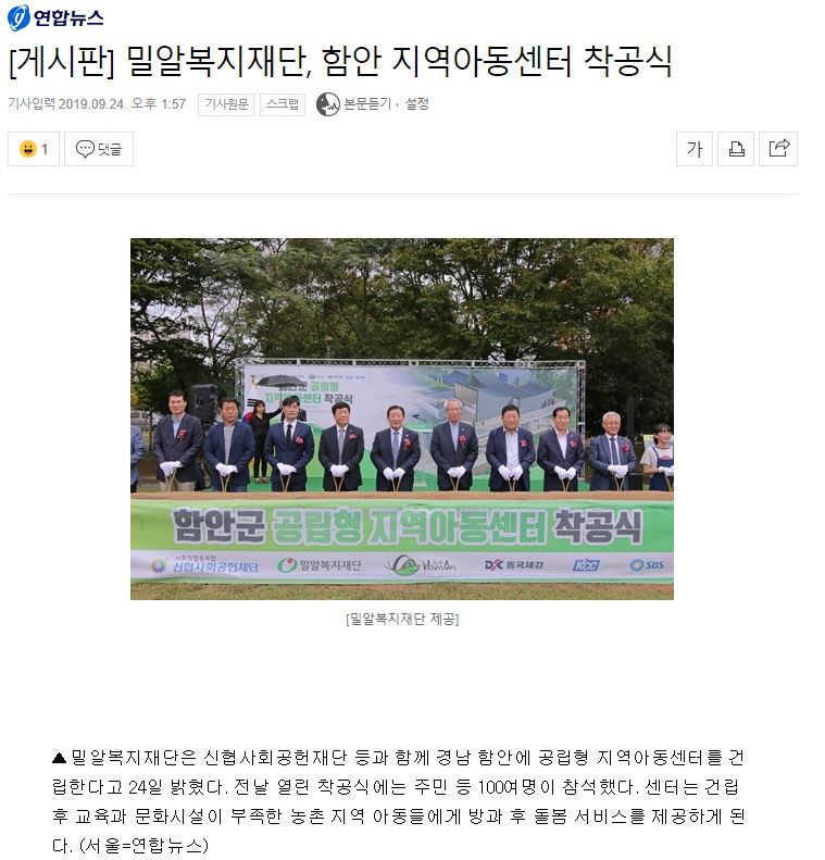 [연합뉴스] [게시판] 밀알복지재단, 함안 지역아동센터 착공식
