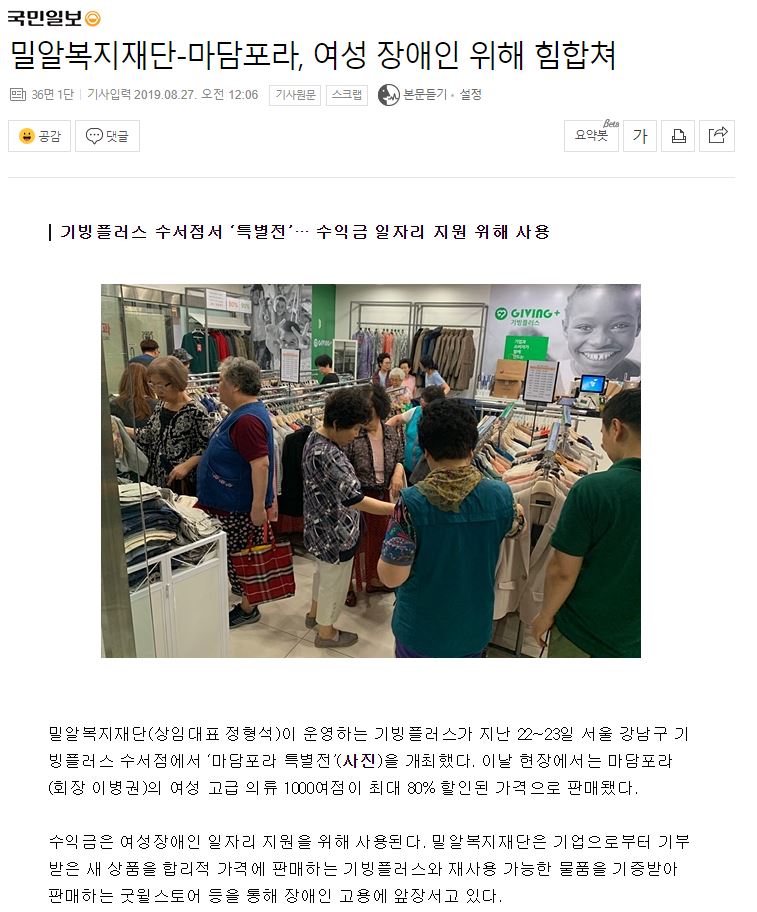 [국민일보] 밀알복지재단-마담포라, 여성 장애인 위해 힘합쳐