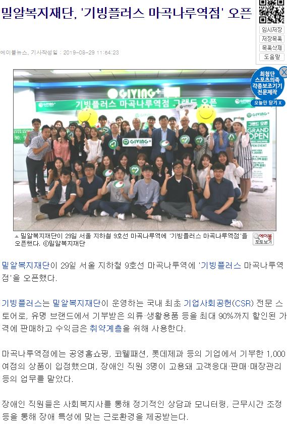[중앙일보] 밀알복지재단, 기빙플러스 마곡나루역점 오픈