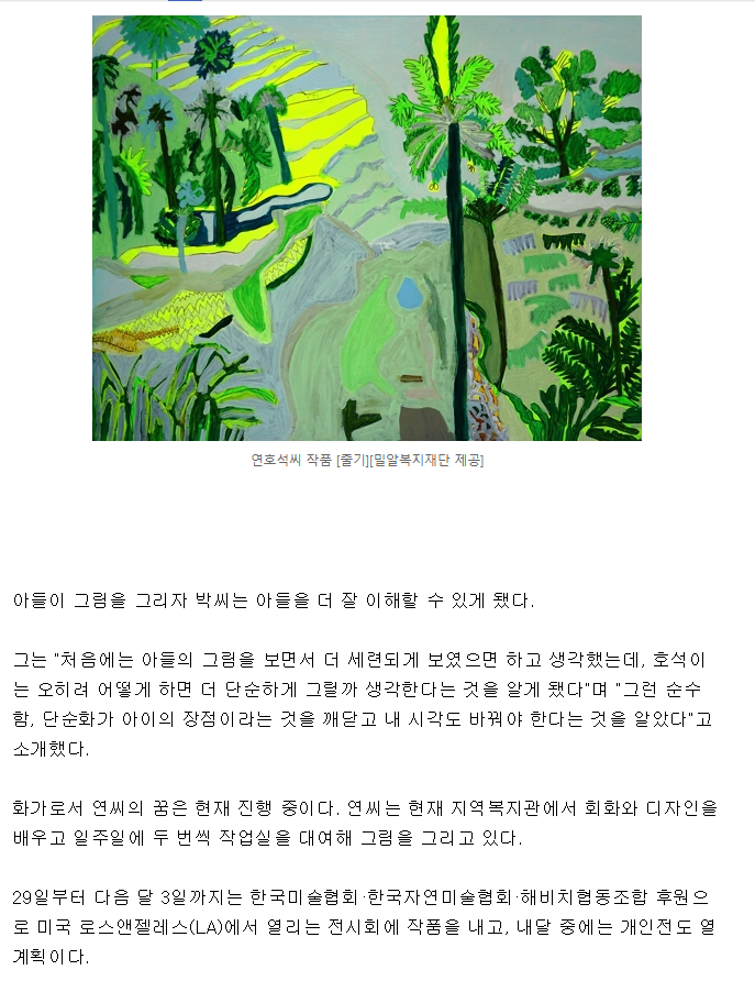 [연합뉴스] "자폐가 미술에선 오히려 강점…좋은 영향력 끼치고 싶어요"