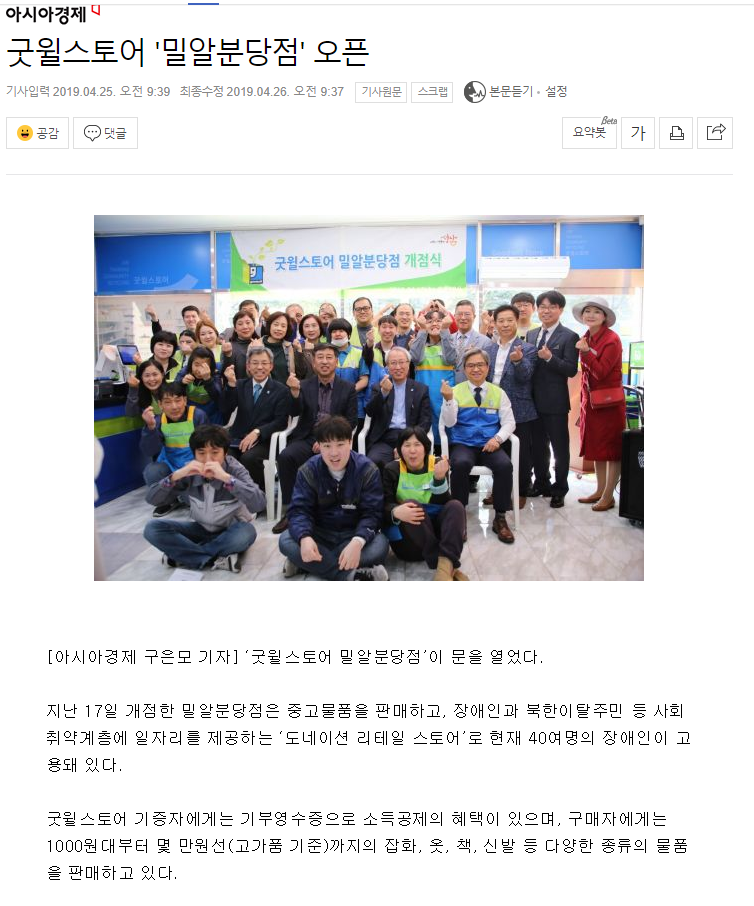 [아시아경제] 굿윌스토어 '밀알분당점' 오픈