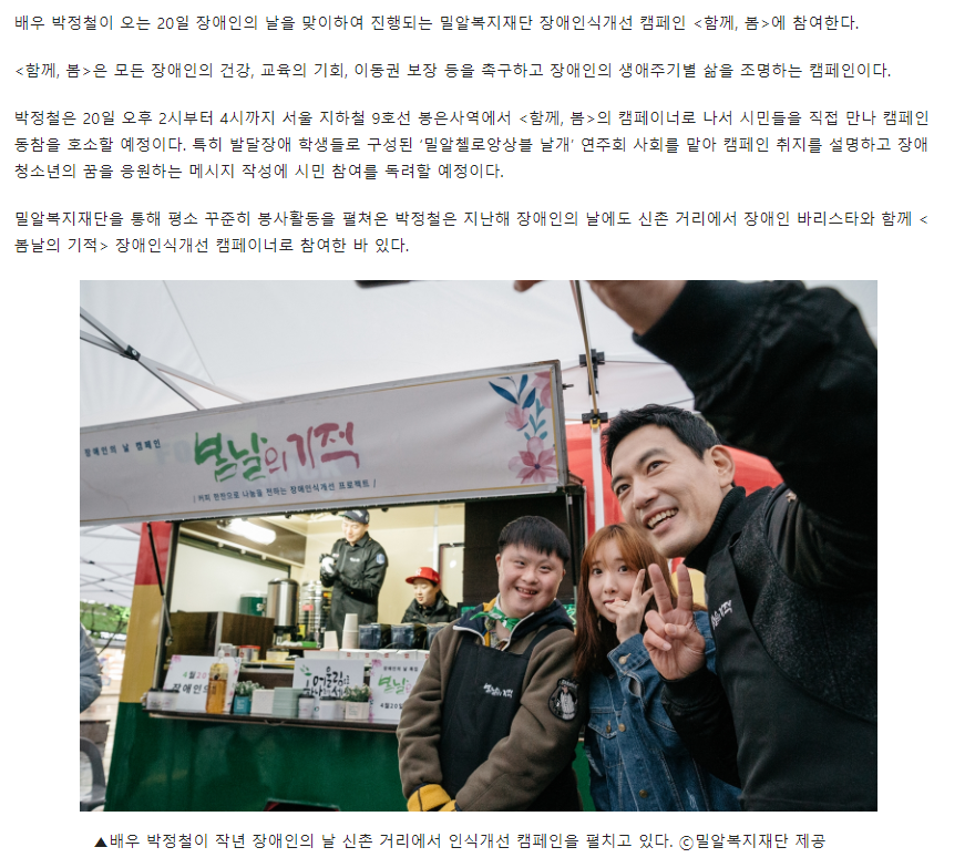 [뉴스웍스] 배우 박정철, 장애인식개선 캠페인 '함께, 봄'참여