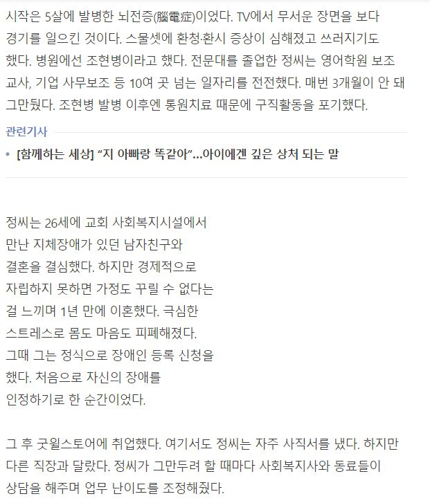 [중앙일보] [함께하는 세상] “조현병 앓는 나 자신 인정하고서 비로소 사회에 발 디뎠죠”