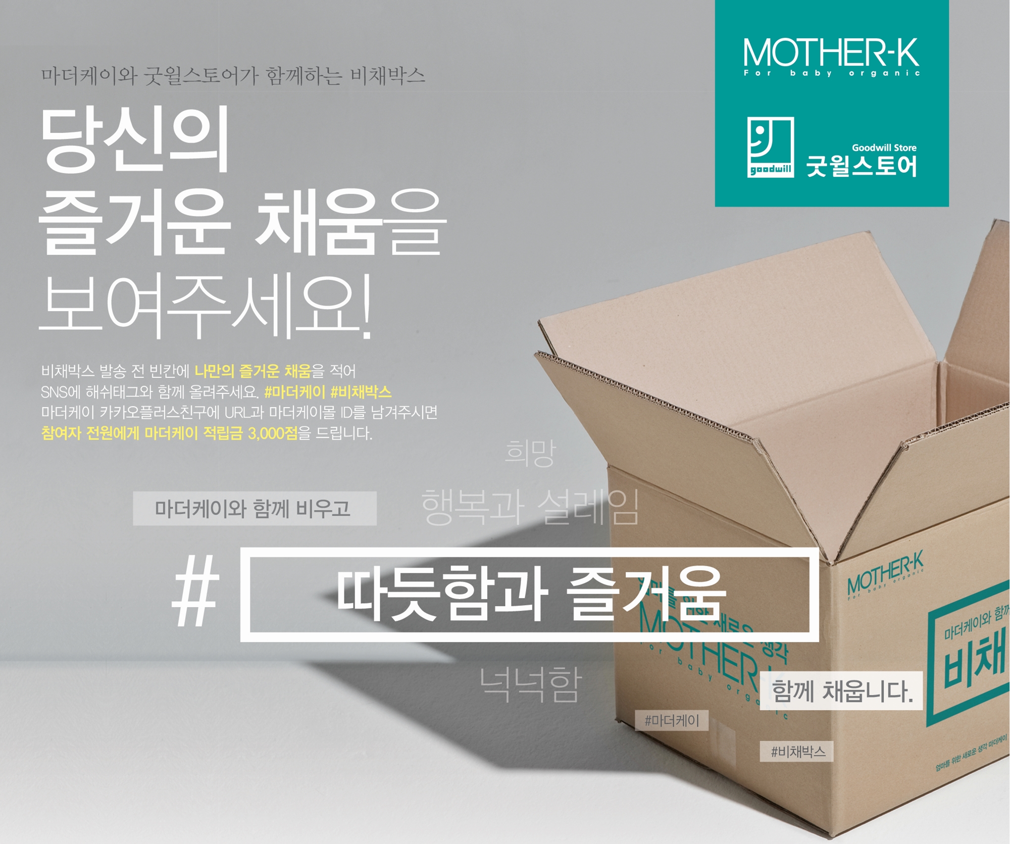 밀알복지재단에서 운영하는 굿윌스토어와 프리미엄 육아용품 브랜드 마더케이가 12월부터 ‘비채박스(비움과 채움)’ 캠페인을 벌인다.