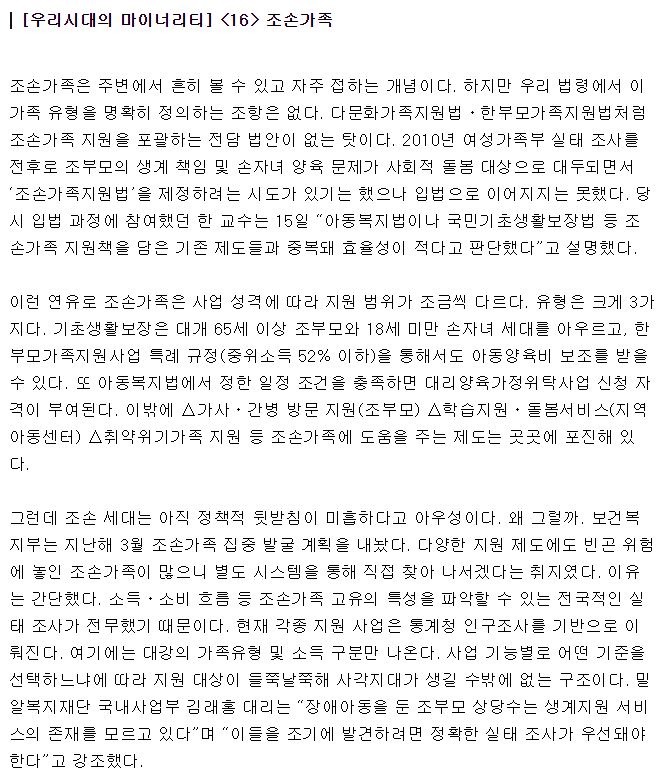 [우리시대의 마이너리티] <16> 조손가족 / 탈출구 안 보이는 가난ㆍ질병ㆍ세대갈등... 多중고 신음하는 조손가족[우리시대의 마이너리티] <16> 조손가족 / 정확한 실태 조사 뒤 흩어져 있는 지원 정보 원스톱 제공해야