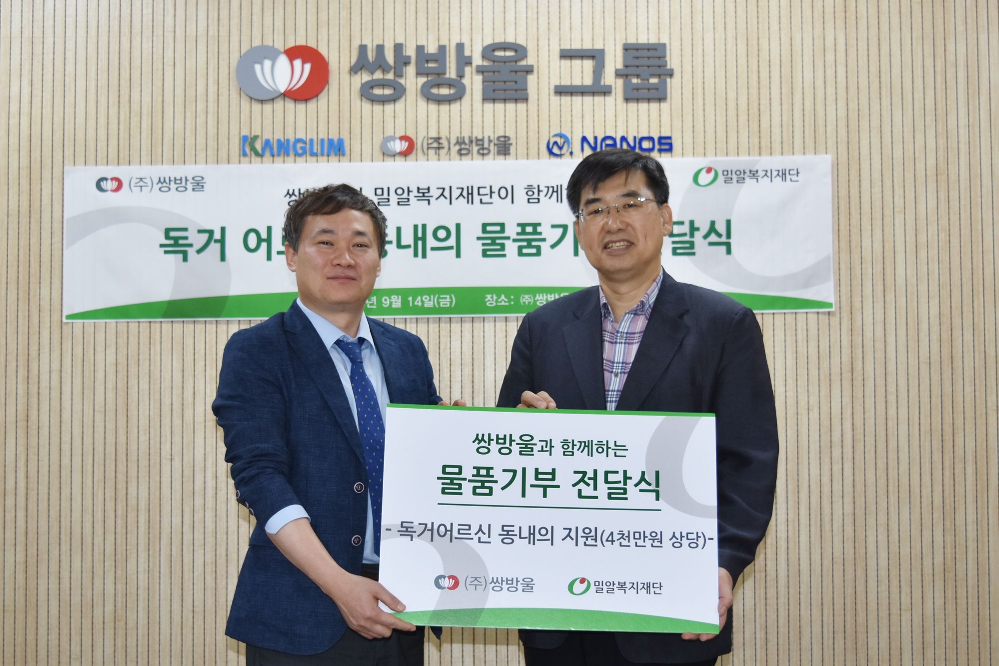 밀알복지재단 김인종 기획조정실장은 “우리나라는 노인 인구 3명 중 1명이 독거노인으로, OECD 국가 중 노인빈곤율과 노인자살율이 가장 높다. 이에 독거노인 빈곤 문제를 해결하기 위한 관심과 지원이 절실한 상황”이라며 “따뜻한 나눔을 나누어주신 (주)쌍방울 관계자 분들께 감사드리며, 앞으로도 독거노인을 향한 지속적인 관심을 부탁드린다”고 전했다.