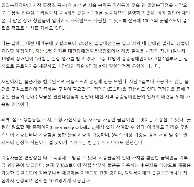 [국민일보] [장애인 복지, 밀알에서 기적으로] ‘굿윌이 필요할 때’ 캠페인… 돕고 싶다면 이렇게 하세요