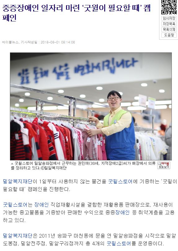 [에이블뉴스] 중증장애인 일자리 마련 ‘굿윌이 필요할 때’ 캠페인