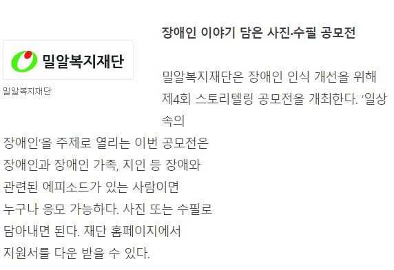 [중앙일보] [NPO 브리핑] 장애인 이야기 담은 수필-사진 공모전 外