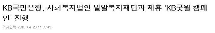 [스포츠조선 외 24건] KB국민은행, 사회복지법인 밀알복지재단과 제휴 'KB 굿윌캠페인' 진행