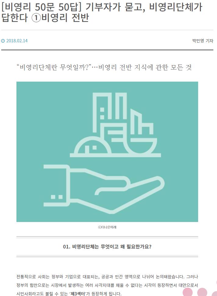 [조선일보] [더 나은 미래] [비영리 50문 50답] 기부자가 묻고, 비영리단체가 답한다