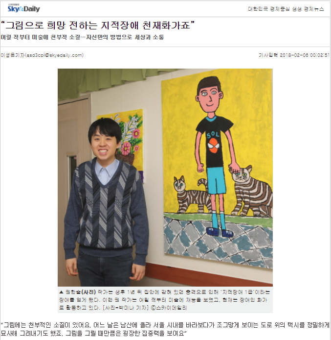 “그림으로 희망 전하는 지적장애 천재화가죠” <스카이데일리 기사보기>