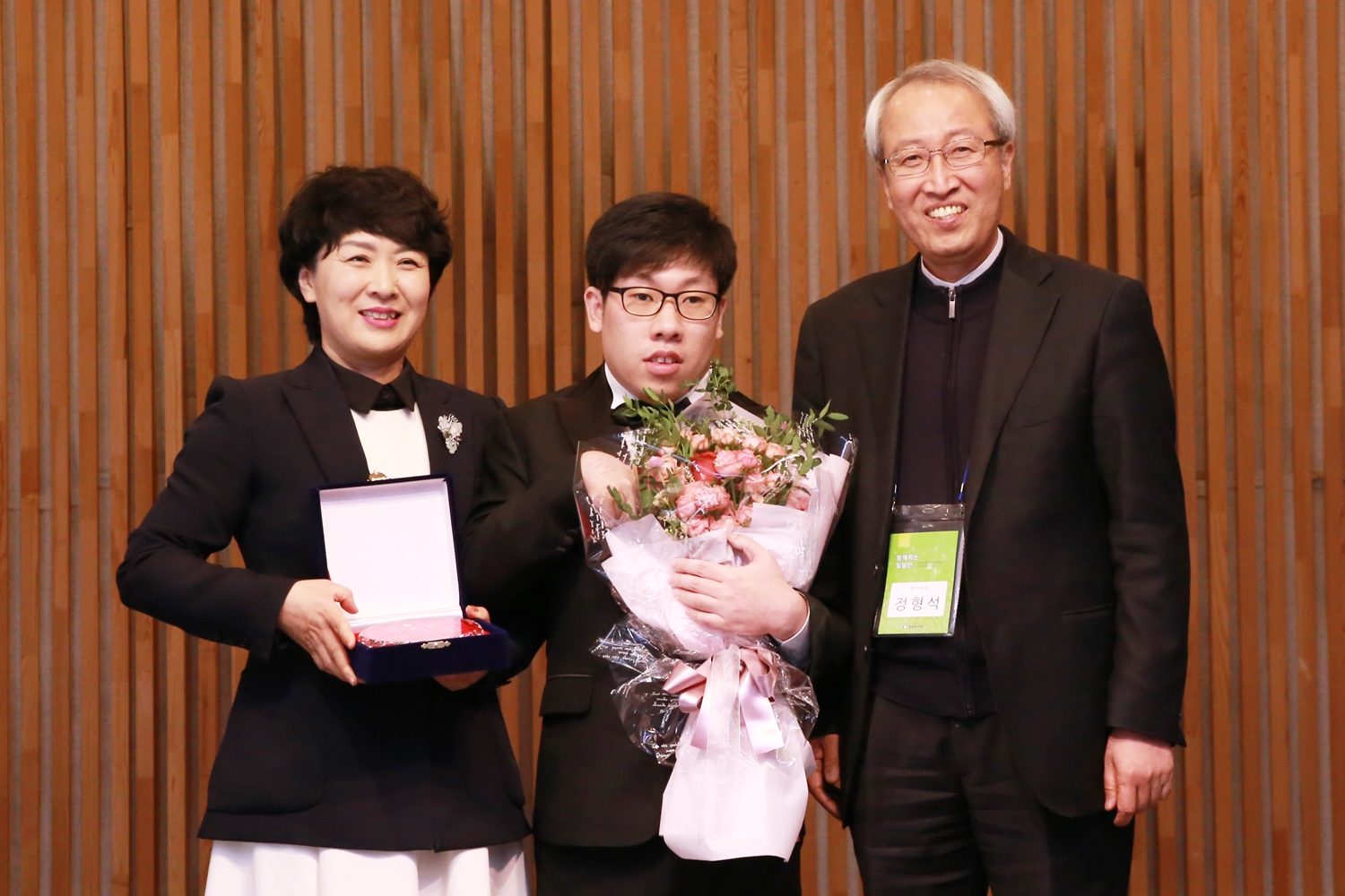 사진1. (왼쪽부터) 박모세 어머니 조영애, 박모세, 정형석 밀알복지재단 상임대표