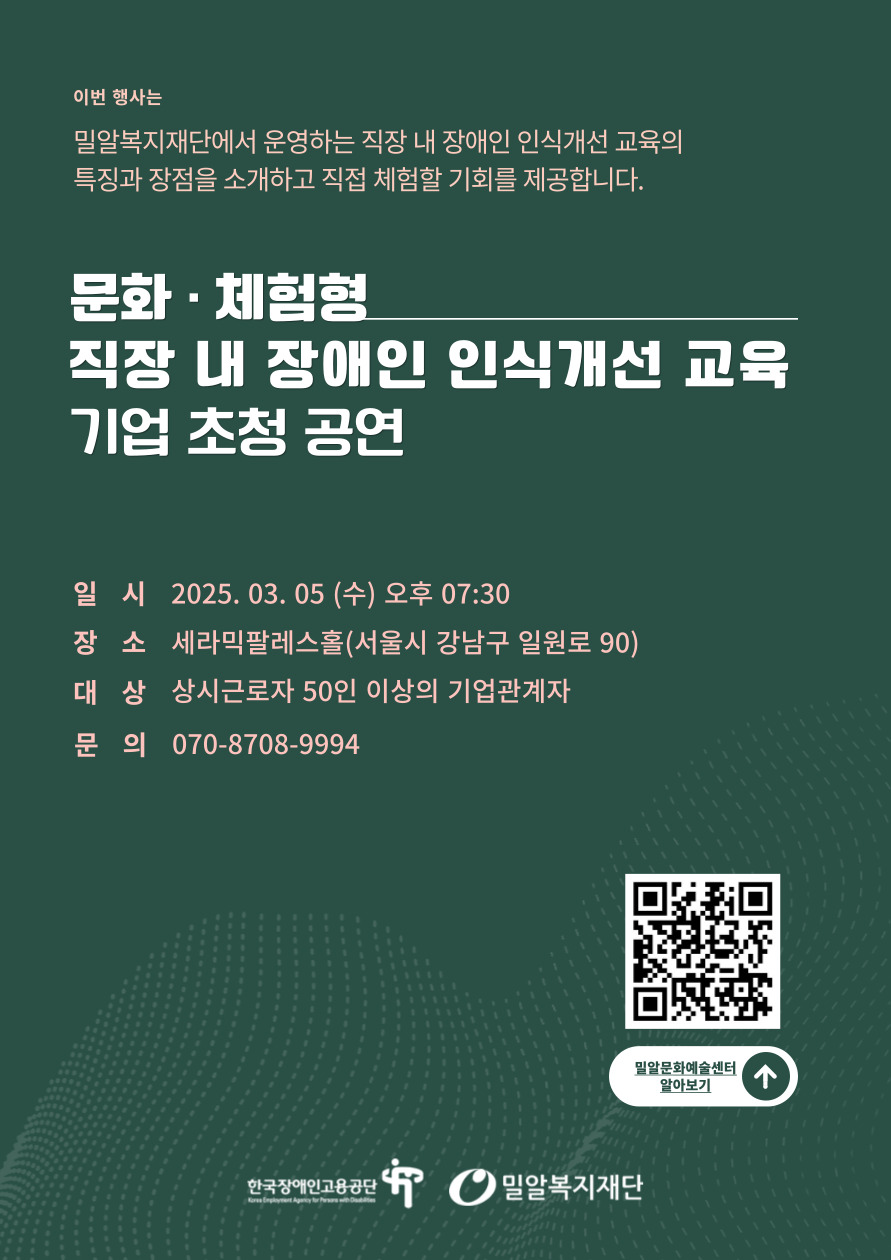문화체험형 직장 내 장애인 인식개선 교육 기업 초청 공연 포스터 (포스터=밀알복지재단)