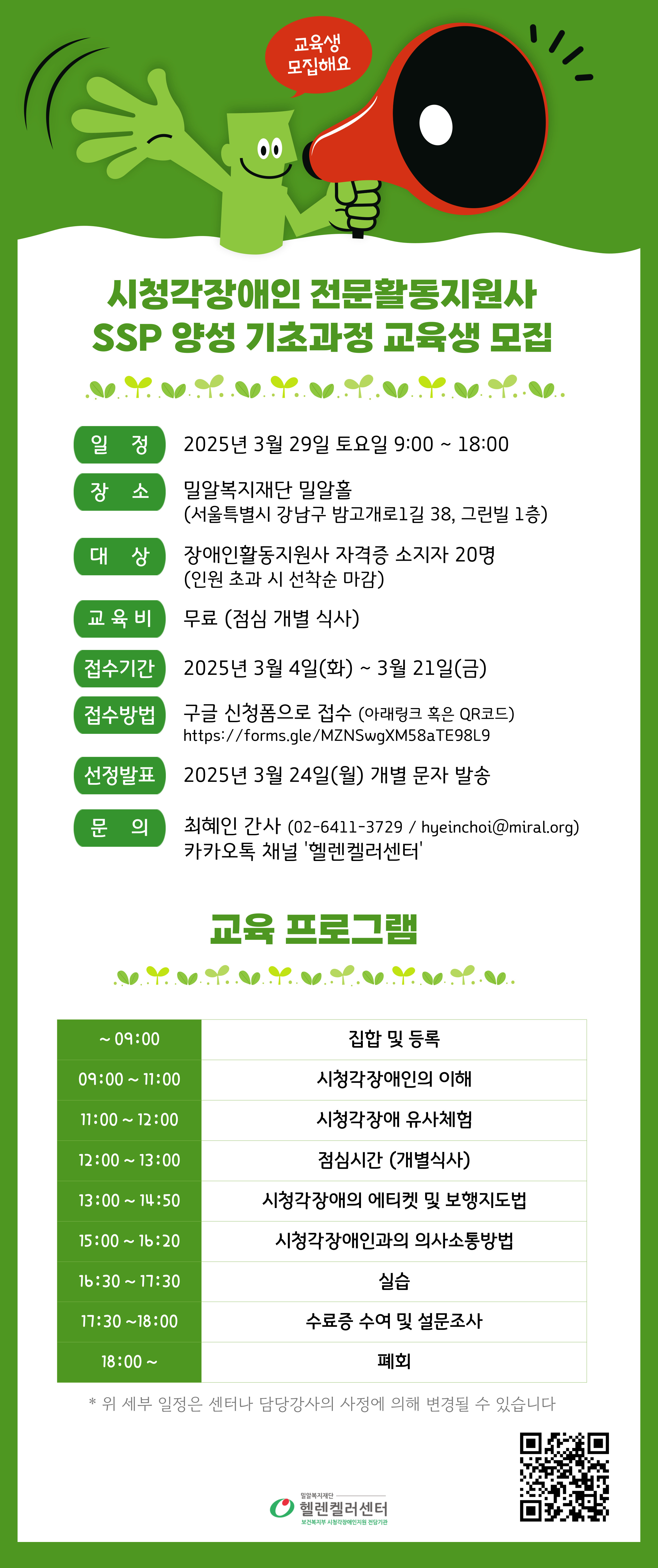 대상자로 선정 시 3월 29일 서울 강남구 밀알복지재단에서 교육을 받을 수 있다. 시청각장애인의