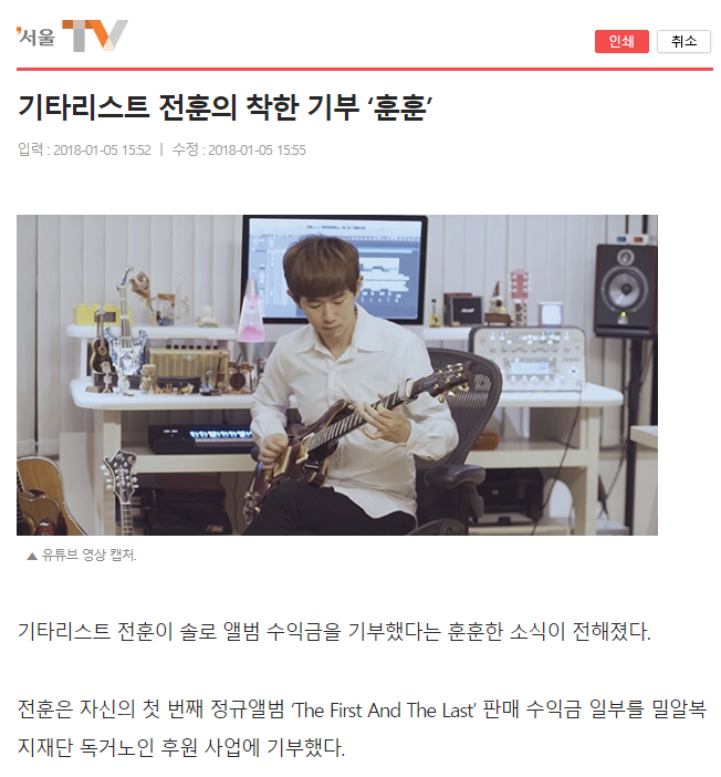 기타리스트 전훈의 착한 기부 ‘훈훈’ <서울TV 기사보기>