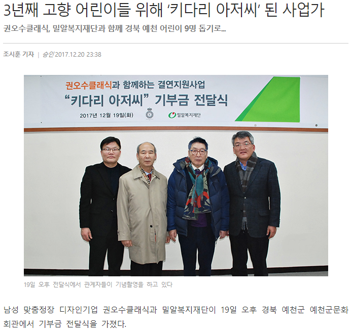 권오수클래식과 밀알복지재단 경북 예천 어린이 지원 <기독인뉴스 기사보기>