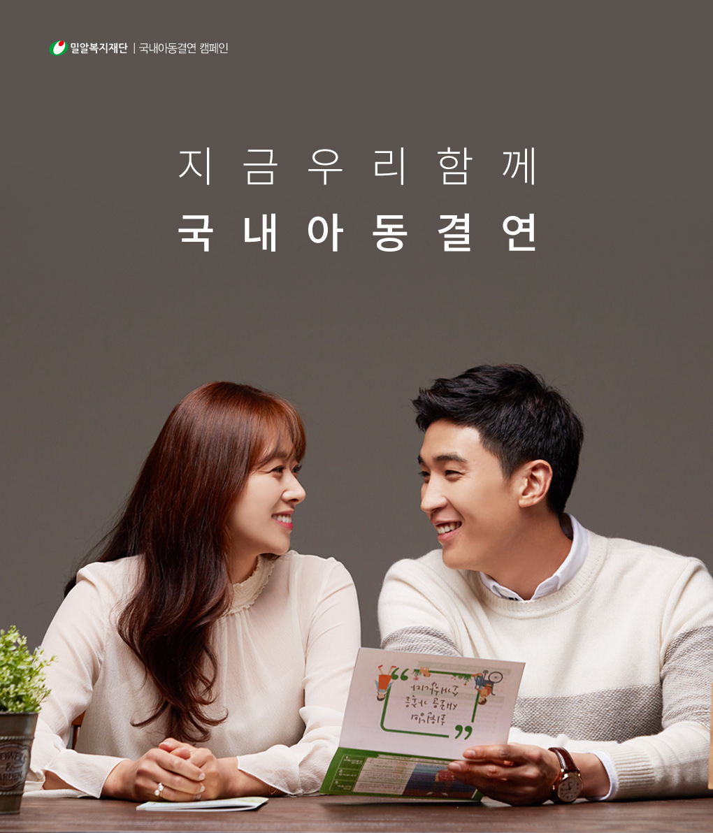 ‘지금·우리·함께 국내아동결연’은 경제적 어려움으로 반드시 받아야 하는 치료마저 중단될 위기에 처한 국내 저소득 장애아동들과 결연후원을 맺고 의료비 등을 지원하는 캠페인이다. 장신영과 강경준 커플은 장애아동들이 건강하게 성장해 꿈과 희망을 품을 수 있도록 캠페인 영상 촬영을 통해 자신의 재능을 기부했다.