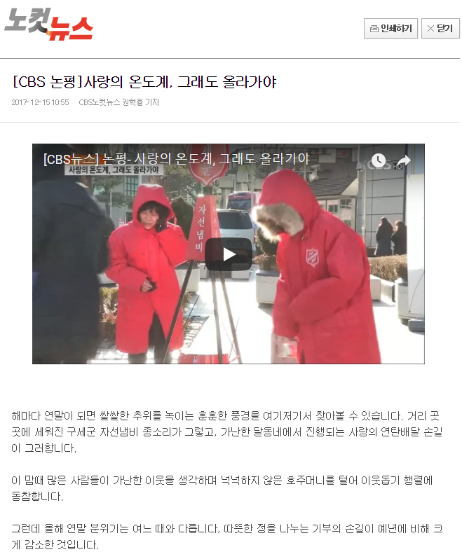 [노컷뉴스] [CBS 논평] 사랑의 온도계, 그래도 올라가야