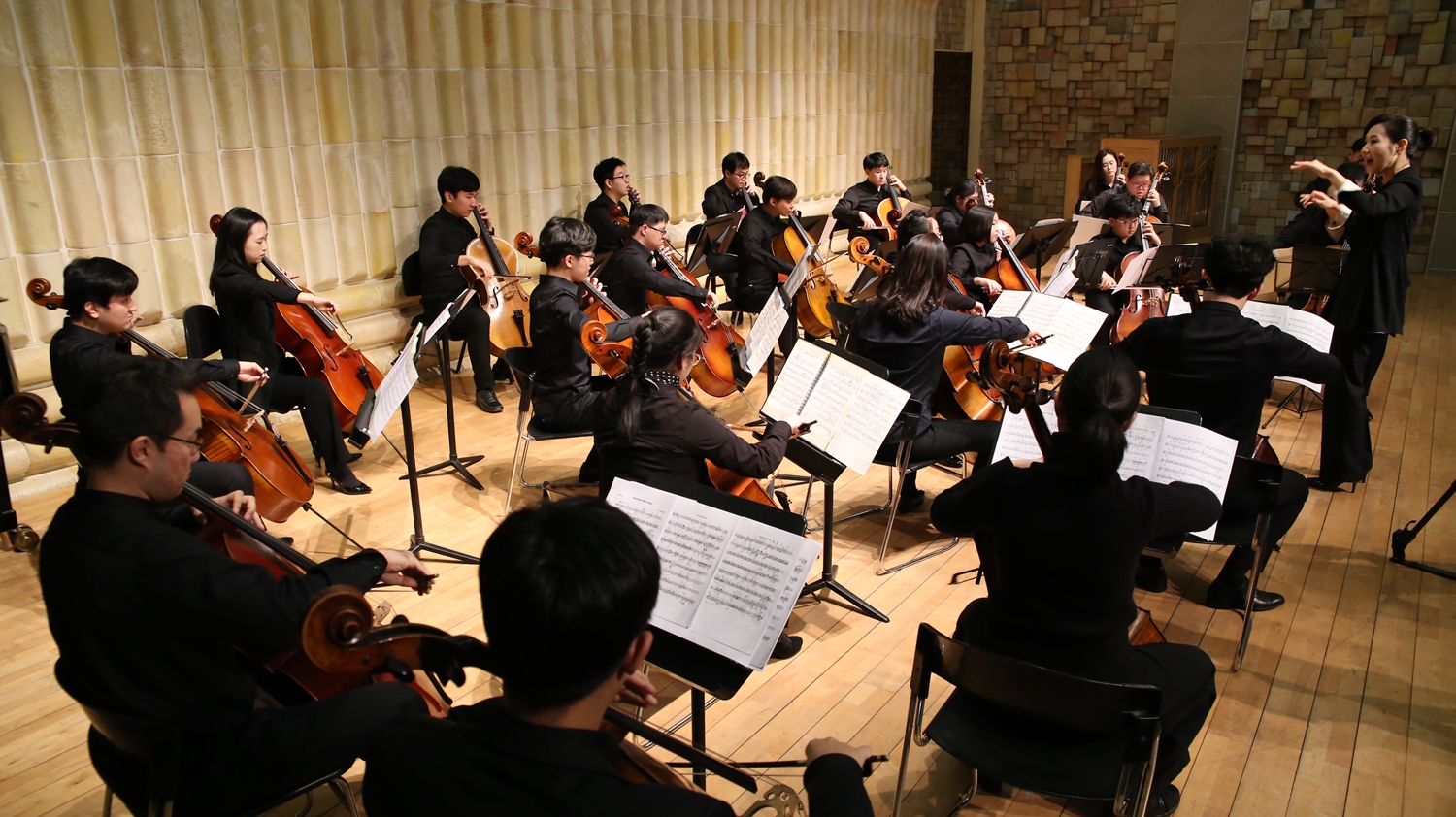 사진3. 오새란 음악감독과 단원들이 연주를 하고 있다.