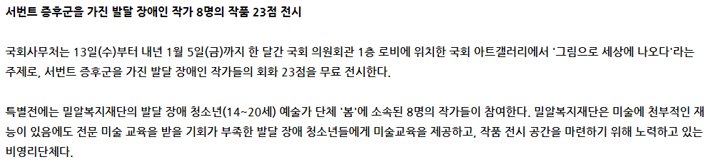 국회 아트갤러리 12월 전시 <그림으로 세상에 나오다> 개최 <중부뉴스통신 기사보기>