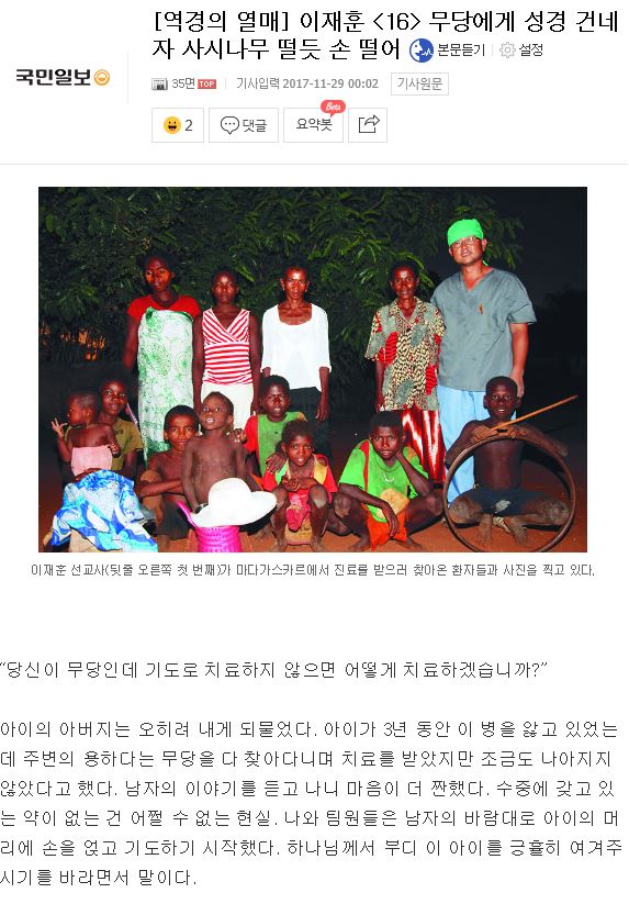 [국민일보] [역경의 열매] 이재훈 <16> 무당에게 성경 건네자 사시나무 떨듯 손 떨어