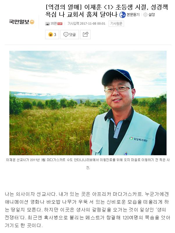 [국민일보] [역경의 열매] 이재훈 <1> 초등생 시절, 성경책 욕심 나 교회서 훔쳐 달아나