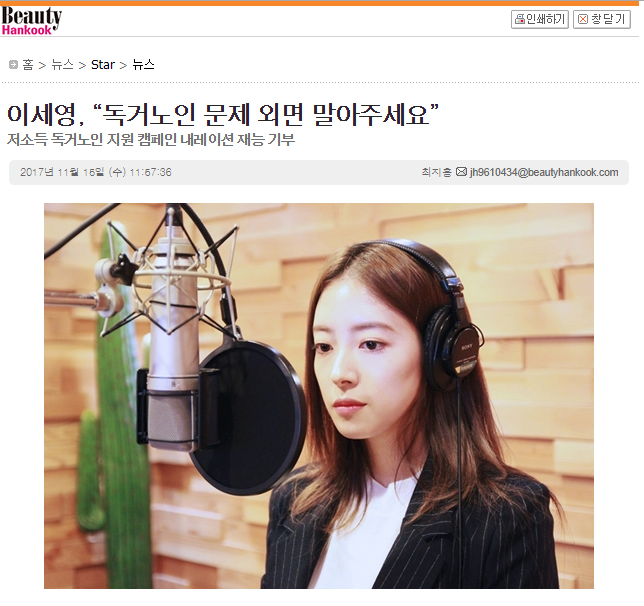 [뷰티한국] 이세영, “독거노인 문제 외면 말아주세요”
