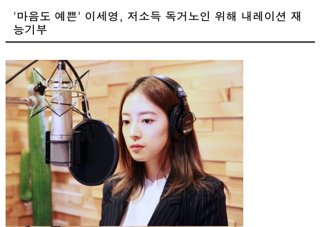[오센] '마음도 예쁜' 이세영, 저소득 독거노인 위해 내레이션 재능기부
