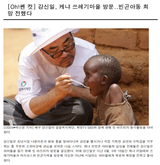 [오센] [Oh!쎈 컷] 강신일, 케냐 쓰레기마을 방문..빈곤아동 희망 전했다