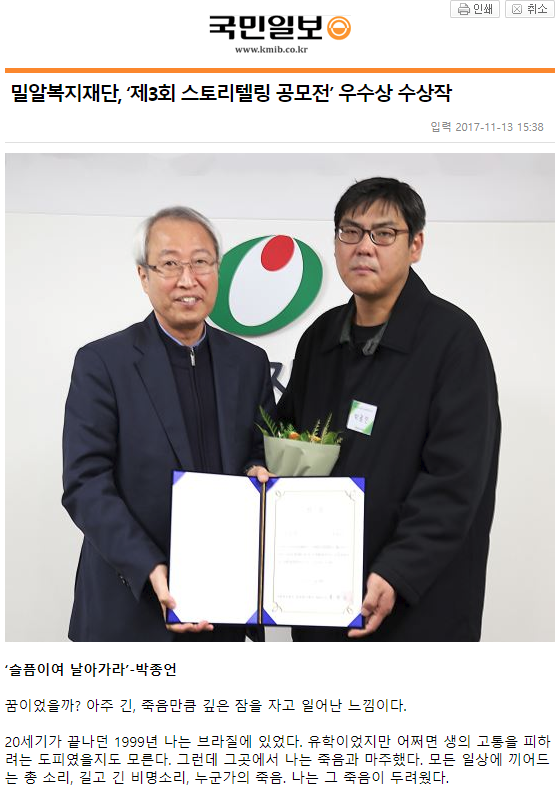 [국민일보] 밀알복지재단, ‘제3회 스토리텔링 공모전’ 우수상 수상작