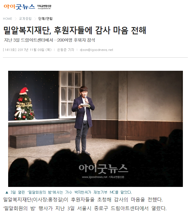[아이굿뉴스] 밀알복지재단, 후원자들에 감사 마음 전해