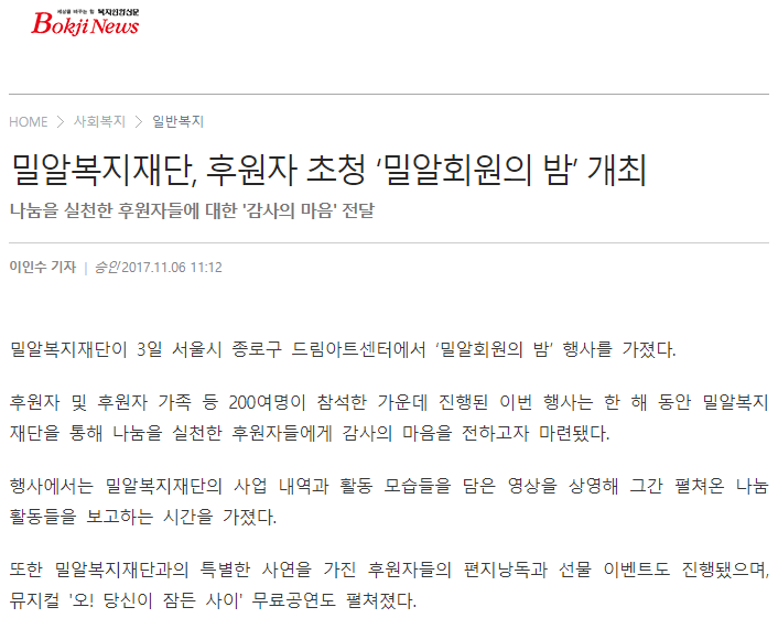 이전 [베이비뉴스] 제4회 서울김장문화제, 120톤 김장 만들어 소외이웃에 기부 다음 [한국인권신문] 밀알복지재단, ‘밀알회원의 밤’ 행사 개최
