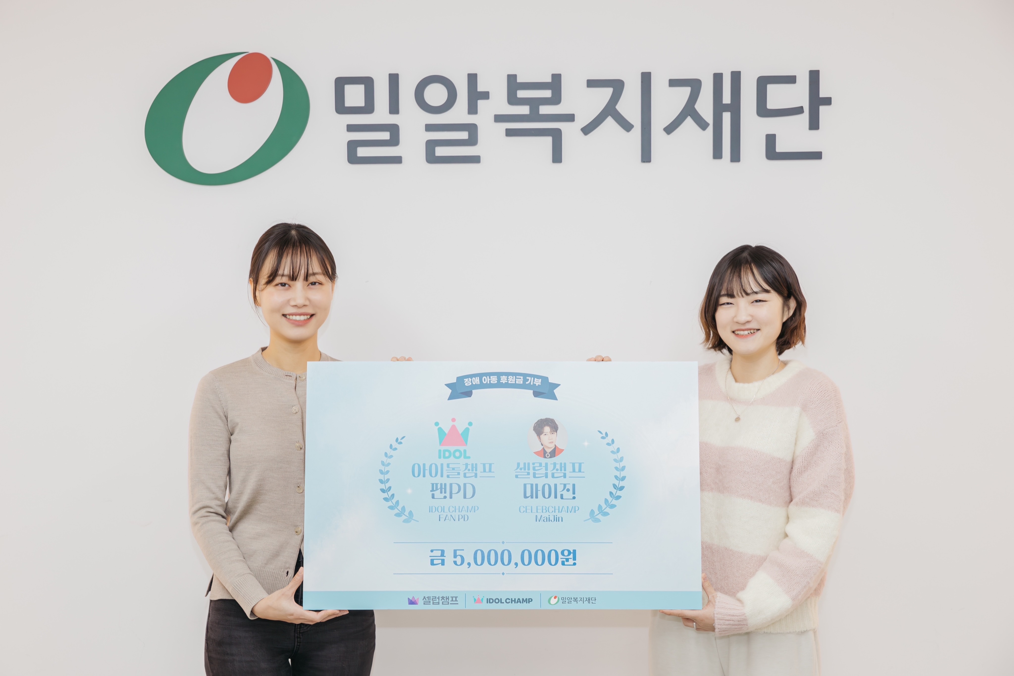 팬덤 앱 서비스 ‘아이돌챔프’, ‘셀럽챔프’를 통해 밀알복지재단에 500만 원을 기부했다.