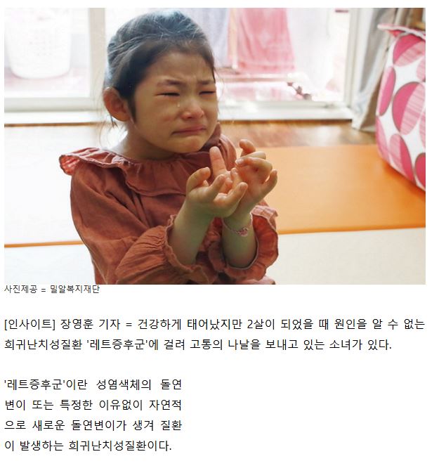 [인사이트] "희귀난치성 걸려 고통 속에 살고 있는 8살 서영이를 도와주세요"