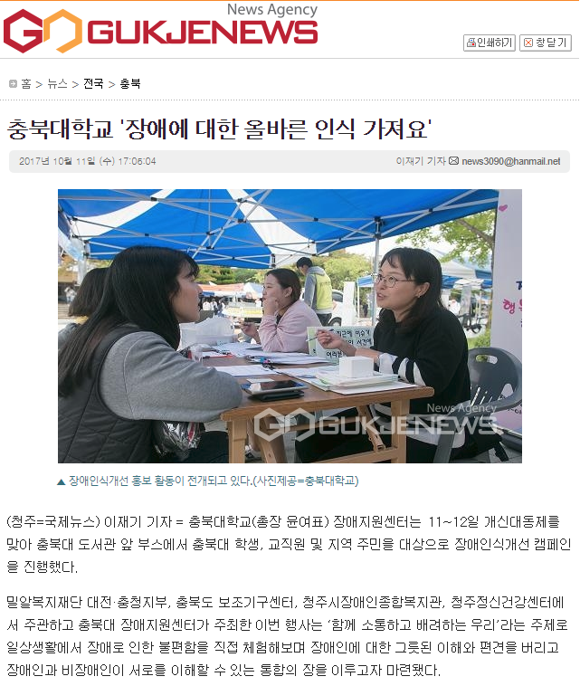 [에듀동아] 충북대, 2017 장애인식개선 캠페인 개최