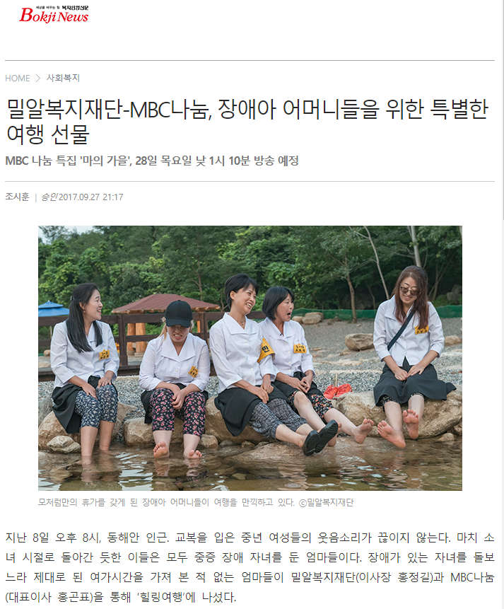 [아크로팬] 밀알복지재단과 MBC나눔, 장애아 어머니들을 위한 특별한 여행 선물