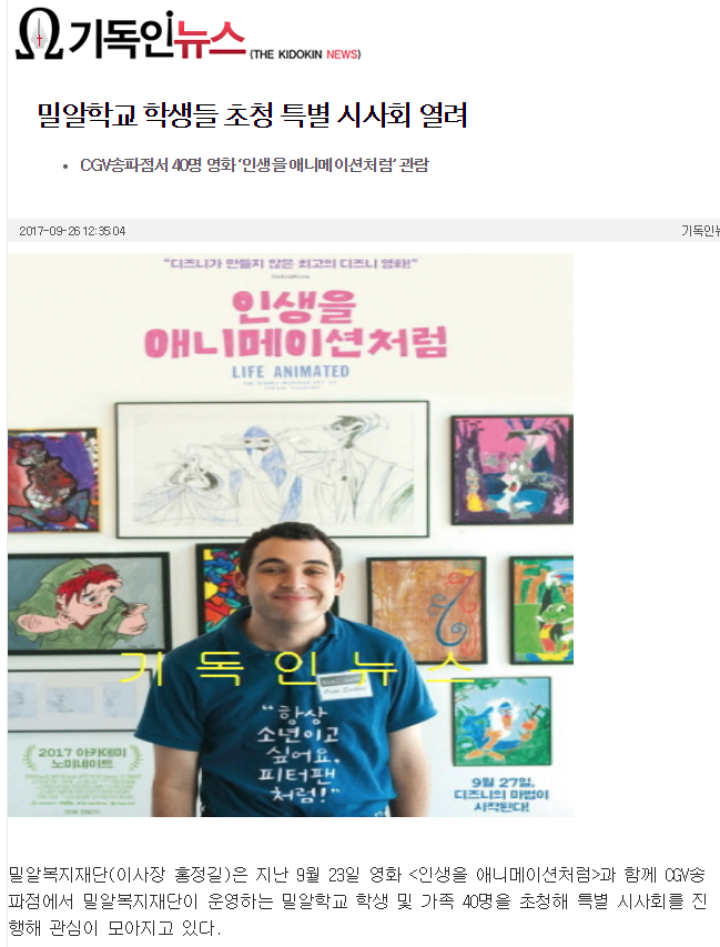 [한국사진방송] 영화 <인생을 애니메이션처럼>, 밀알학교 학생들 초청 특별 시사회 진행