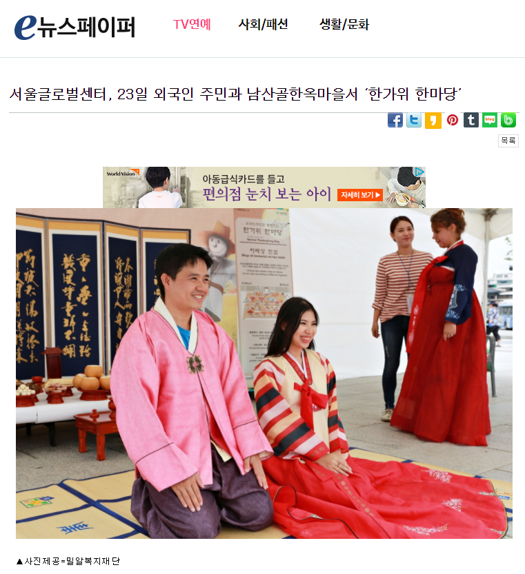 [e뉴스페이퍼] 서울글로벌센터, 23일 외국인 주민과 남산골한옥마을서 ‘한가위 한마당’