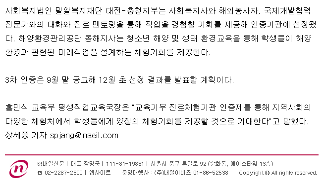 [내일신문] 진로체험 제공기관 236곳 추가 선정
