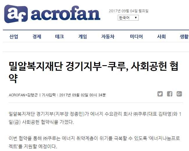 [아크로팬] 밀알복지재단 경기지부-쿠루, 사회공헌 협약
