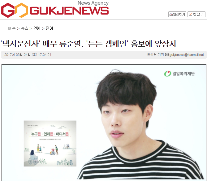 [국제뉴스] '택시운전사' 배우 류준열, '든든 캠페인' 홍보에 앞장서