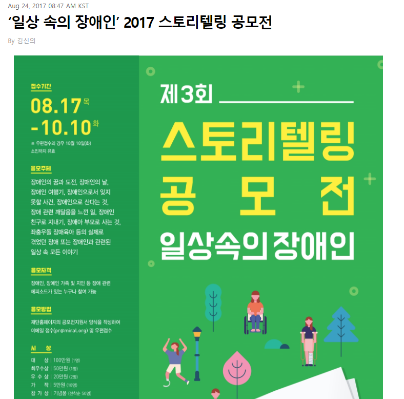 [크리스천투데이] ‘일상 속의 장애인’ 2017 스토리텔링 공모전