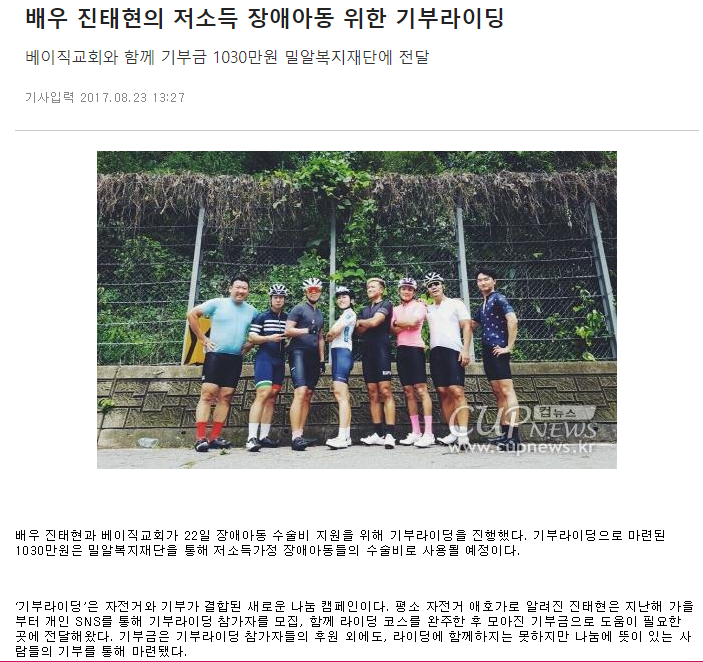 [컵뉴스] 배우 진태현의 저소득 장애아동 위한 기부라이딩