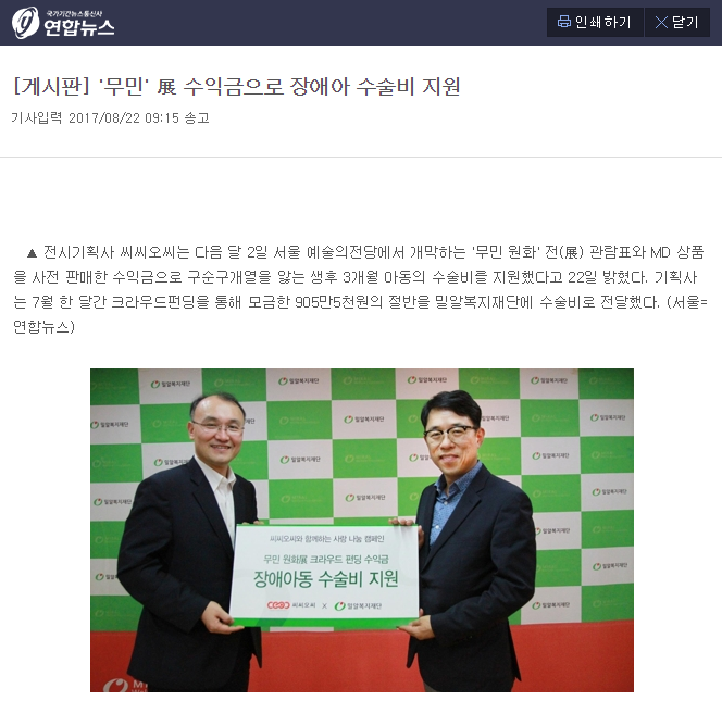 이전 [에이블뉴스] ‘무민원화展’ 펀딩 통해 장애아동 수술비 지원 다음 [국민일보] 밀알복지재단 ‘스토리텔링 공모전’