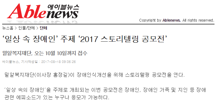 [에이블뉴스] ‘일상 속 장애인’ 주제 ‘2017 스토리텔링 공모전’