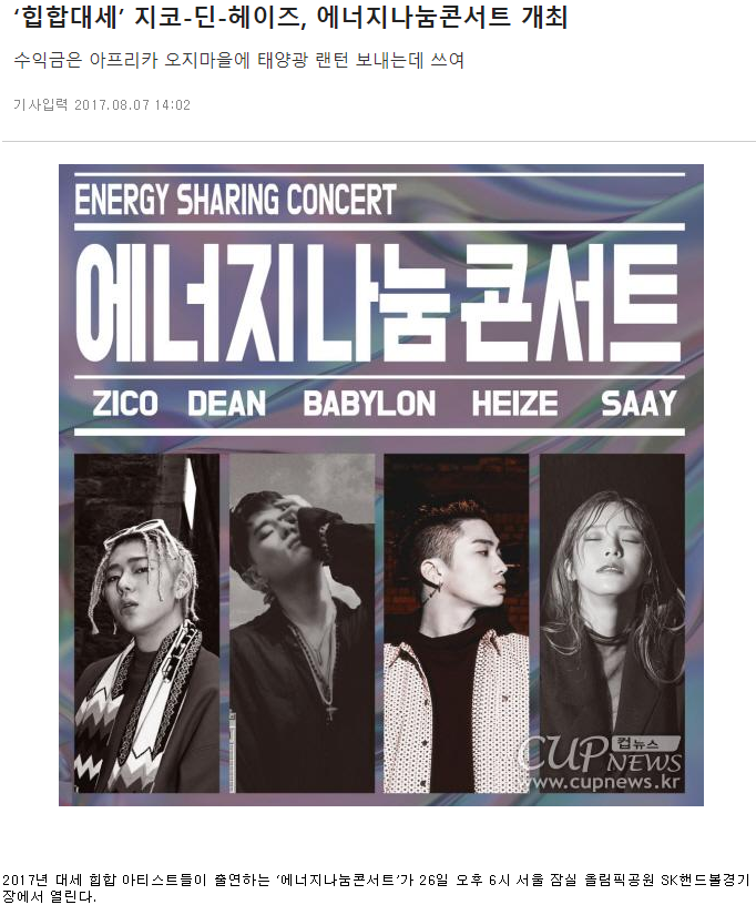 [CUP뉴스] ‘힙합대세’ 지코-딘-헤이즈, 에너지나눔콘서트 개최