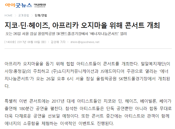[아이굿뉴스] 지코,딘,헤이즈, 아프리카 오지마을 위해 콘서트 개최