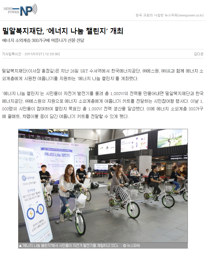 [뉴스파워] 밀알복지재단, ‘에너지 나눔 챌린지’ 개최