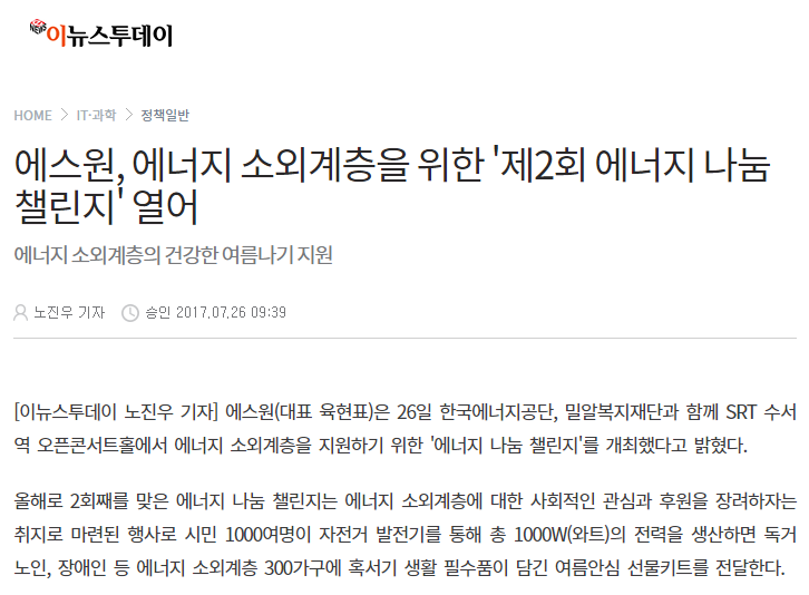 이전 [뉴시스] 에스원, 에너지 소외계층 위해 '나눔 챌린지' 개최 다음 [이데일리] 에스원, '에너지 나눔 챌린지' 개최